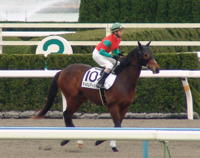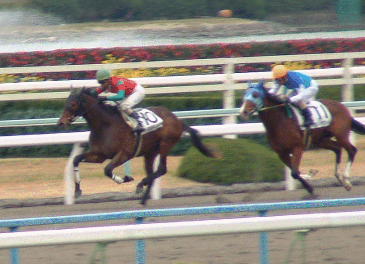 追いシャッターぎみ ブレてます ごめんなさい(^^;) 明るい望遠が欲しい..... ゴールへ疾走するディバインと4着馬 (アドマイヤの勝負服) サウンドステージとのワイドで 1910は美味しかった(^^)v |