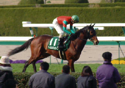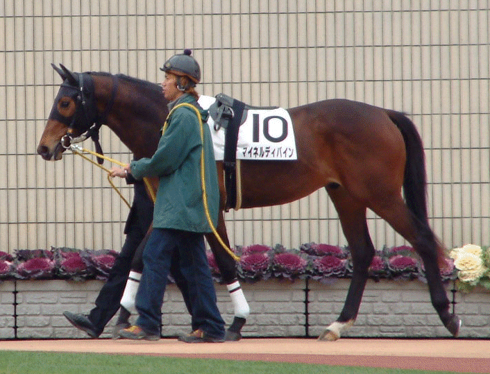 2002−1−26 京都6R 新馬戦 ダ1400m ディバイン登場 スタイル良い 去年ツアーで会ったときより ひとまわり大きくなっている 492kg 8/14人気 |